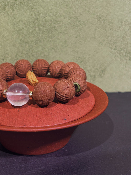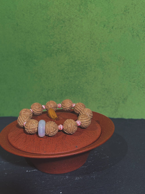 Shoushan stone and wood bead bracelet -